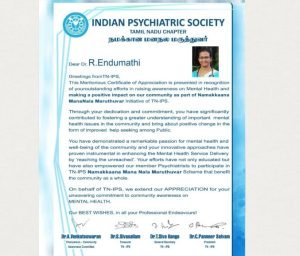CHAIRPERSON for Women Empowerment Committee – Indian Psychiatric Society – Tamil Nadu Chapter (2024 – 2025)